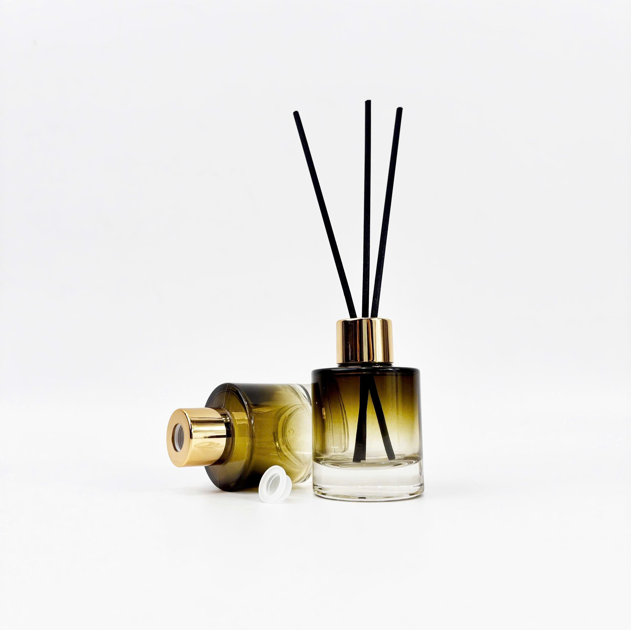 Điểm nổi bật của chai khuếch tán tinh dầu 40ml chính là thiết kế đơn giản nhưng vô cùng tinh tế. Thân chai được làm từ thủy tinh dày dặn với hiệu ứng chuyển màu nhẹ từ đáy trong suốt lên màu xanh rêu sang trọng ở phần thân trên. Thiết kế này giúp chai vừa đảm bảo tính thẩm mỹ, vừa giúp người dùng dễ dàng quan sát lượng tinh dầu còn lại bên trong.